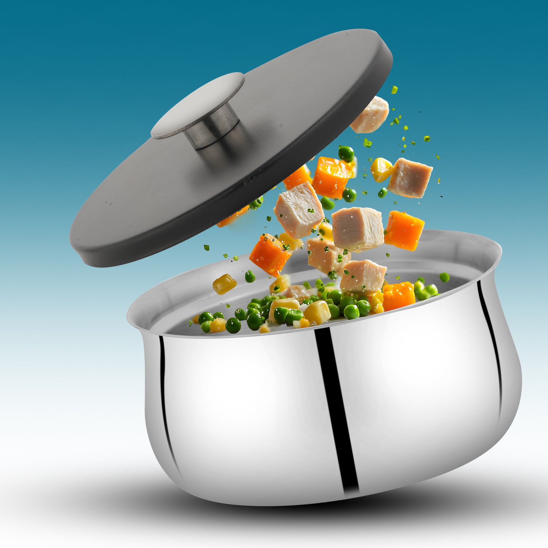 Upgrade your dining experience with the Zest Handi, designed for both function and elegance. Made from high-quality stainless steel, its double-walled insulation retains heat for longer, keeping your food fresh and warm. Whether it’s fragrant biryanis, rich curries, or slow-cooked dals, this handi ensures every dish is served at the perfect temperature. With its sleek design and durable build, it’s a must-have for modern kitchens and dining tables. Serve in style and enjoy every meal, hassle-free!