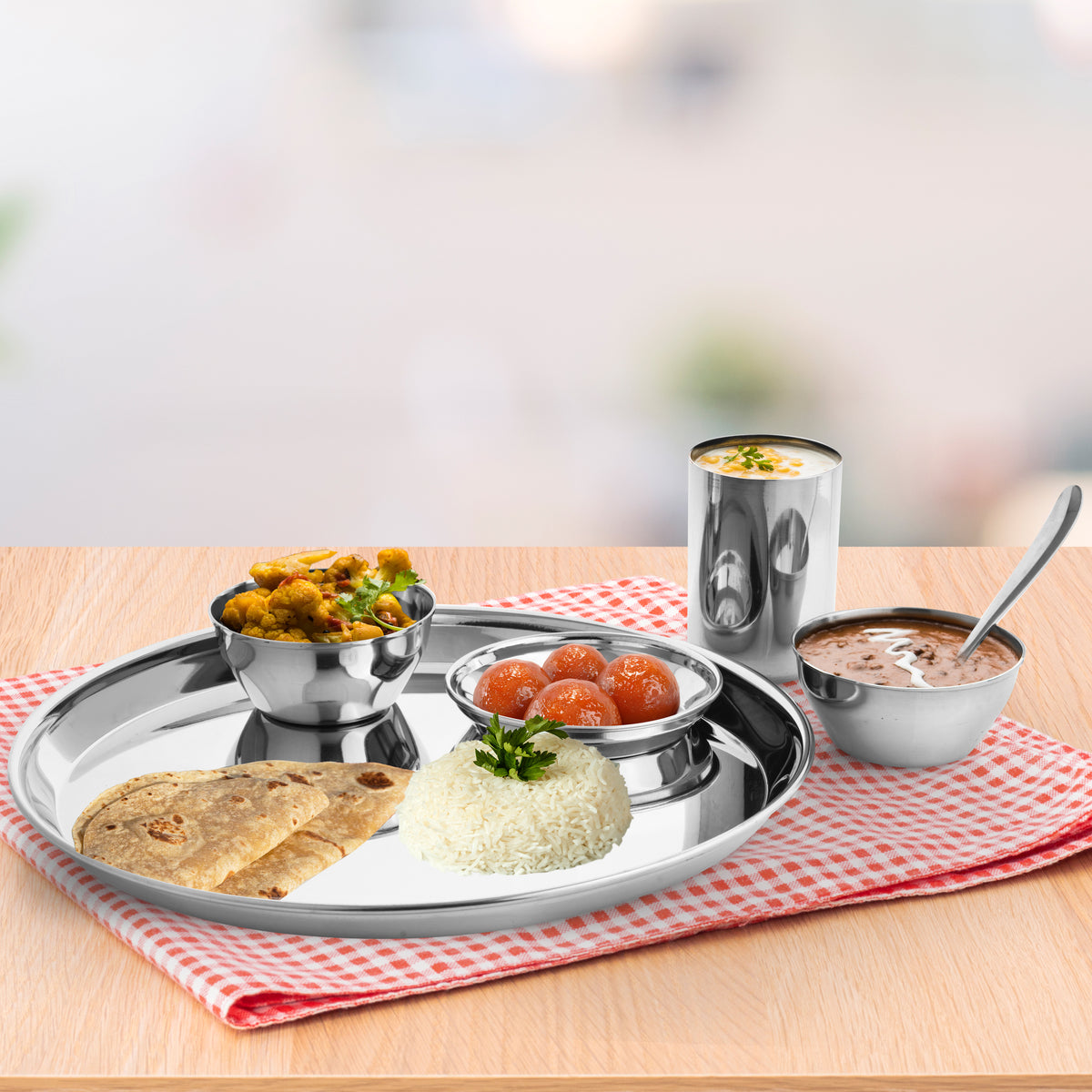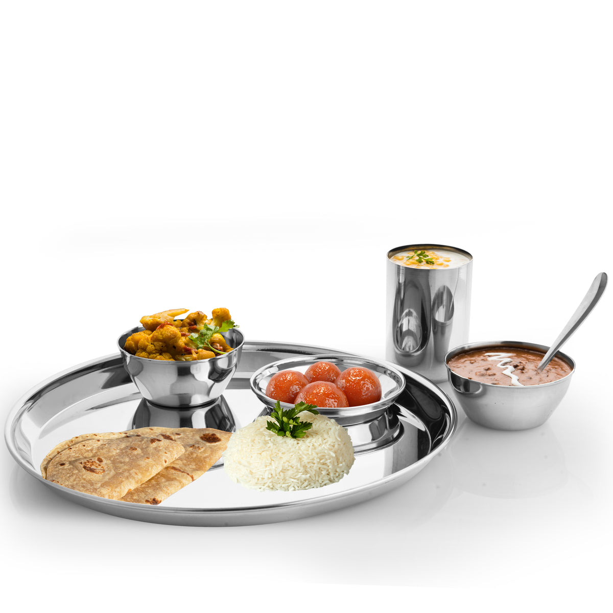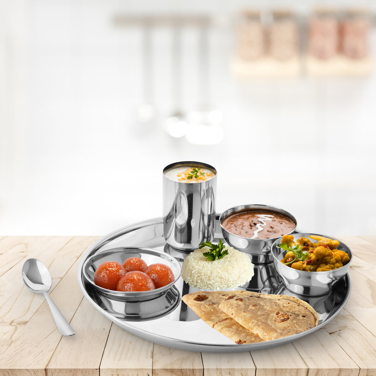 Unlike aluminium utensils, which can react with acidic foods like tomatoes or lemon and may leach metal into food, stainless steel is non-reactive, hygienic, and safe for everyday use. It helps preserve the natural taste, nutrients, and quality of food, making it a healthier choice for your kitchen. Strong, elegant, and reliable, this dinner set is perfect for daily dining and also makes a thoughtful gift for weddings, housewarmings, and special celebrations.