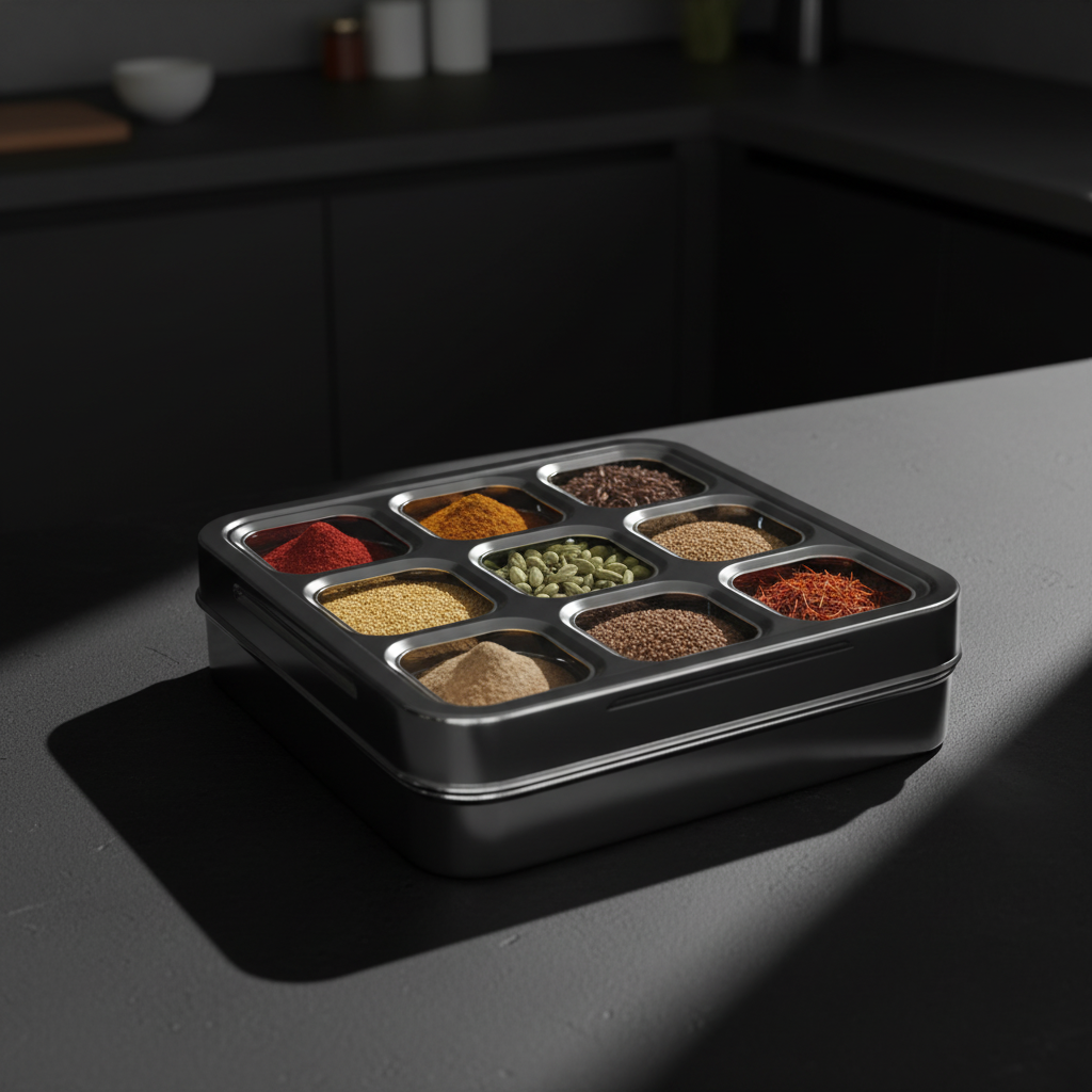 Crafted from high-quality, food-grade stainless steel, this masala dabba offers excellent durability and is resistant to rust, stains, and odors. It keeps your spices fresh, aromatic, and safe from moisture, so your dishes always burst with flavor.